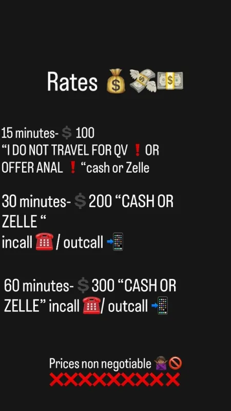 Cash and Zelle only. Rates are non-negotiable and clearly listed here and in